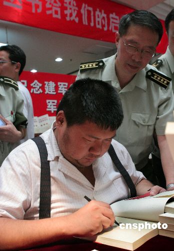 中国人民解放军出版社21日在北京举行《<星火燎原>未刊稿》系列丛书发行仪式,毛泽东之孙毛新宇参加签名售书。这套丛书收集了徐向前、粟裕等600多位开国将士撰写的亲生经历695篇,约400多万字。中新社发 马新刚 摄