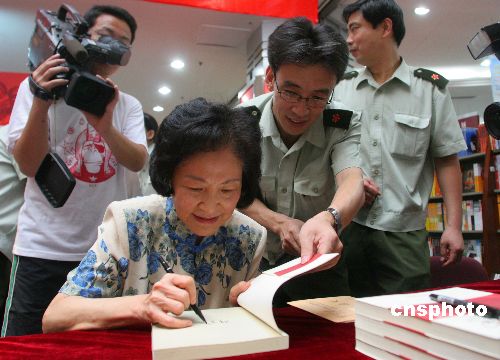 中国人民解放军出版社21日在北京举行《<星火燎原>未刊稿》系列丛书发行仪式,贺龙女儿贺捷生为读者签名留念。这套丛书收集了徐向前、粟裕等600多位开国将士撰写的亲生经历695篇,约400多万字。