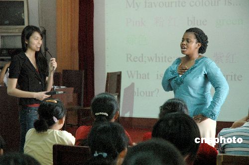 2007年7月30日,由9名清华大学师生和2名美国大学生志愿者组成的“2007年中美大学生暑期教育扶贫社会实践活动小分队”,在国家扶贫开发重点工作县--河南省社旗县开展暑期教育扶贫实践活动,为当地中小学师生开展英语、计算机等免费知识培训。中新社发 杨银鹏 摄