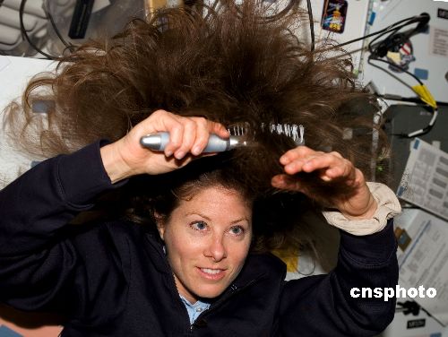 八月十九日,美国宇航局指令“奋进”号航天飞机快速脱离国际空间站,直接按轨道向地球返航,赶在大西洋飓风“迪安”抵达美国本土前一天“回家”。女宇航员特蕾西-考德威尔高兴地在太空中梳理云鬓,将失重飘舞的长发美化一番。中新社发 nasa 摄
