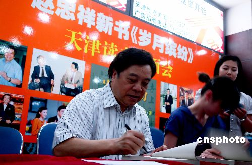 8月26日,著名节目主持人赵忠祥在天津图书大厦签售新书《岁月缤纷》。《岁月缤纷》是赵忠祥继《岁月随想》、《岁月情缘》之后创作的岁月系列的第三部作品。该书中一半多是图片,记录了赵忠祥积累多年的国画作品及他由此而生的人生感悟。中新社发 李胜利 摄