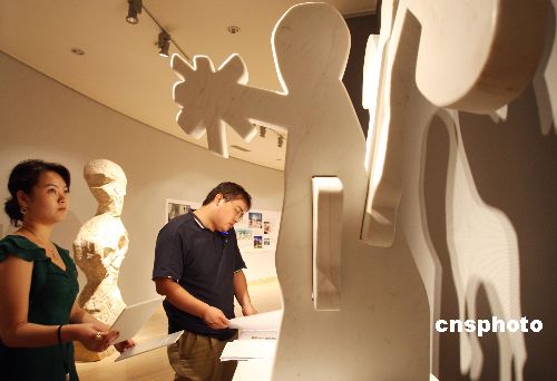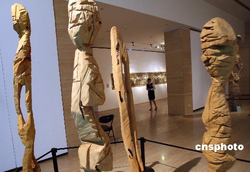 8月29日,“周氏兄弟三十年艺术回顾展”在北京中国美术馆开幕,展出的作品共有百余件,内容分为周氏兄弟各时期图片、文献,全方位地展示他们在国外的生活、创作,并特设阅读区,另一板块则全面展示他们不同艺术时期、不同类型的作品。周氏兄弟(周山作、周大荒)是上世纪八十年代走向海外的中国艺术家。中新社发 钱兴强 摄