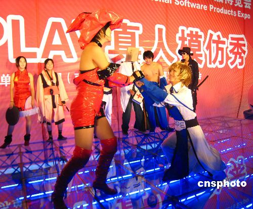 9月1日至3日,在第三届中国(南京)国际软件产品博览会上,动漫真人模仿秀吸引了与会中外客商和参观者。中新社发 谷昌旺 摄