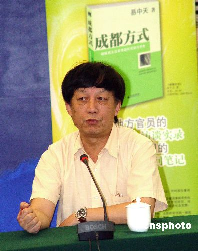 九月二十三日,著名学者易中天在北京携新书《成都方式》与媒体见面,以历史文化见长的他在新作中大谈成都的农村改革。中新社发 应妮 摄