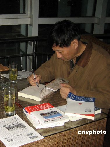 10月25日,第四届鲁迅文学奖在北京揭晓。日本文学翻译研究者、中国社会科学院研究员许金龙翻译的《别了,我的书》(大江健三郎著)获优秀文学翻译奖。据介绍,这是包括日本文学在内的东方文学首次入选鲁迅文学奖。图为许金龙2007年4月在北京向日本友人介绍他翻译的《别了,我的书》。中新社发 段跃中 摄
