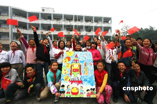 11月7日,重庆市永川区红旗小学学生通过绘画等形式庆祝“嫦娥一号”卫星第三次近月制动成功,表达心中的喜悦。中新社发 陈仕川 摄