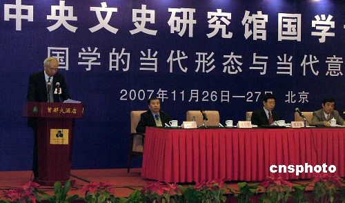 经中国国务院批准,中央文史研究馆国学论坛二十六日在北京举行。论坛主题是:国学的当代形态和当代意义。共有全国文史研究馆馆员以及中国社会科学院、北京大学、中国人民大学国学专家,香港、澳门、台湾地区专家学者五十人出席。中新社发 徐长安 摄