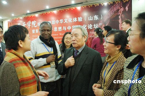 12月16日至18日,由中国国家汉办主办的全球孔子学院院长研修班中华文化体验暨首届“孔子思想与中华文化论坛”在山东大学举行。活动期间,来自18个国家34个孔子学院的44名外方院长赴孔子故里——山东曲阜,参观考察了孔府、孔庙和孔子研究院,体验中华文化,并出席首届“孔子思想与中华文化论坛”,聆听山东大学儒学研究中心著名教授丁冠之和傅有德教授主讲的《孔子,我们共同的老师》、《论言说:中西差异及其根源》的演讲。背景资料:孔子学院是中外合作建立的非营利性教育机构,其宗旨和使命是增进世界人民对中国语言和文化的了解,发展中国与外国的友好关系,促进世界多元文化发展,并以东方圣人孔子的名字命名。从2004年开始,中国已在64个国家和地区建立210所孔子学院(包括孔子课堂),其中125所已开班授课。此外,还有61个国家的200多个机构提出开办申请。中新社发 金云 摄