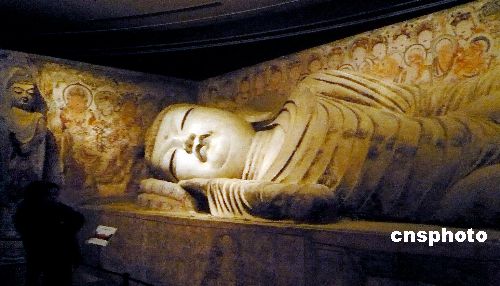 1月21日,正在北京中国美术馆举行的“盛世和光——敦煌艺术大展”吸引众多中外参观者,该展由中国美术馆和敦煌研究院联合主办,敦煌研究院为此次展览提供了丰富的展品,包括敦煌石窟复制洞窟10个、敦煌石窟彩塑复制品11尊、敦煌石窟壁画临本120幅、敦煌莫高窟千相塔出土彩塑真品10件、敦煌藏经洞出土文物真迹10件、敦煌石窟其他出土文物10件,以及部分“艺术名家与敦煌展”展品、敦煌研究院美术研究所创作作品。中新社发 钱兴强 摄