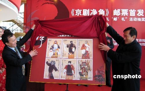 2月23日,《京剧净角》特种邮票首发式在梅兰芳大剧院隆重举行,本套邮票是继京剧旦角、丑角、生角之后发行的第四套京剧行当邮票。此次发行的《京剧净角》特种邮票一套六枚,规格长四十毫米、宽三十毫米,面值共六元八角。邮票图名分别为张飞、曹操、廉颇、包拯、徐彦昭、杨延嗣,这六位净角形象均以京剧剧中人物的典型形象为原本,于方寸间展现了京剧“花脸”艺术的独特魅力。图为国家京剧院院长吴江、北京市邮票公司副总经理邓慧国为《京剧净角》特种邮票在京首发揭幕。中新社发 于立霄 摄
