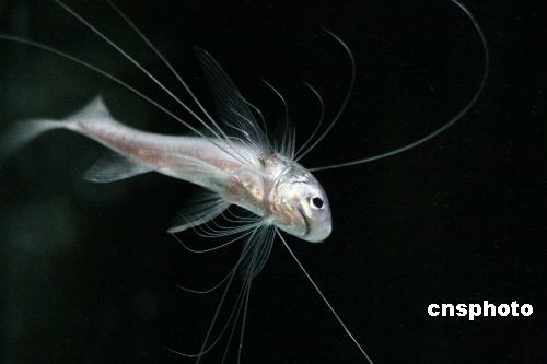 3月16日,“千手观音”鱼在上海海洋水族馆展出。这种珍稀鱼类名叫长指马鲅,是该馆最近引进的。长指马鲅主要分布在南亚地区的海域中,腹部长着很多细线状的鳍条,俗称“千手观音”。中新社发 颖慧 摄