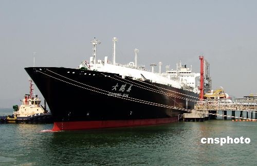 4月3日,中国第一艘液化天然气(LNG)运输船在上海顺利交付,此举标志着中国基本掌握世界造船尖端技术,中国造船工业开始书写全新的一页。据了解,此间交付的LNG船长二百九十二米,宽四十三点三五米,型深二十六点二五米,航速十九点五节。该船装载量为十四点七万立方米,是目前世界上最大的薄膜型LNG船。中新社发 沪东 摄