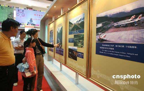5月3日,”西藏今昔——大型主题展“正在北京民族文化宫举办。展览分为西藏历史与封建农奴制和日新月异的新西藏两个部分,图为观众正在参观日新月异的新西藏展区。中新社发 张勤 摄