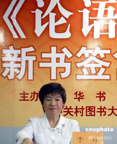 有“学术超女”之称的学者于丹十日在此间签售其新作《<论语>感悟》。在母亲节前夕,她也不忘通过该书送去对母亲们的祝福。她的第一部《<论语>心得》2007年销量超过400万册,一时洛阳纸贵,同时也掀起“国学热”。中新社发 应妮 摄