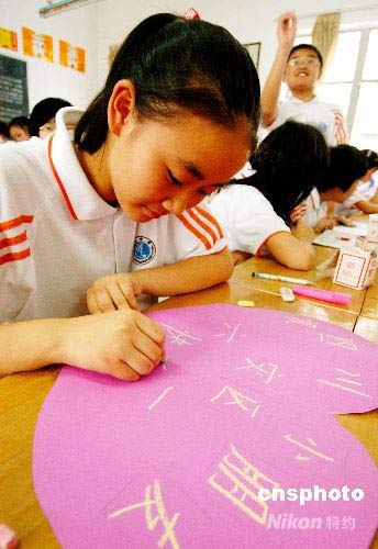 5月26日,为四川地震灾区小朋友捐款27000元的浙江义乌稠州中学714班学生王慧婷,在学校举行的“与灾区小朋友同乐”主题班会上,做起心愿卡,祝愿四川地震灾区小朋友“六一”快乐。王慧婷在为四川地震灾区小朋友捐款中,她虽捐出所有零用钱,但总觉得少。于是打起了家长为她赴英国夏令营已交的27000元钱主意,想把这笔钱捐给四川地震灾区小朋友。放学回家后,她试探地把“放弃赴英国夏令营,将27000元费用全部捐给地震灾区”的想法告诉父亲,她的想法得到全家人支持。第二天王慧婷在父亲陪同下,到学校把27000元钱拿回来,转手捐给了四川地震灾区的小朋友。中新社发 张建成 摄