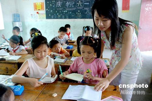 6月6日,江西省婺源县实验学校喜迎两位从四川绵阳地震灾区来求学的两姊妹,一位是曾就读绵阳市成绵路小学三年级(3)班的王心怡同学,一位是曾就读绵阳市玉皇小学三年级(2)班的王月玺,该校免费帮她们减免全部学杂和书本费,为她们提供教材,学校班主任和同学还利用课余时间帮她们补课,热情安排她们在该校三年级(3)班学习,。中新社发 王国红 摄