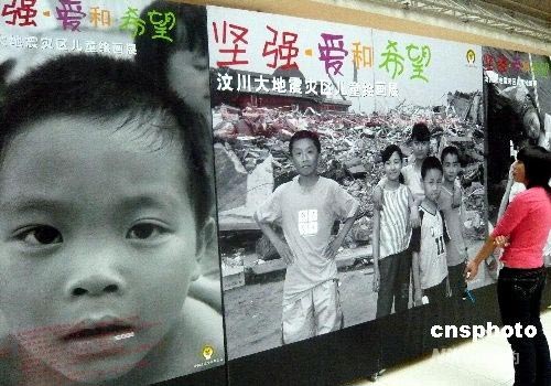 6月18日,正在北京恒基中心商厦举办的“汶川大地震灾区儿童绘画展”吸引观众,该展由“全国妇联中国儿童少年基金会汶川大地震孤儿救助专项基金”主办,在北京进行巡回展出,主题为“坚强"爱和希望”,参展的作品主要来自汶川、绵竹、清平、北川、什邡等地震地区。展览展示了灾区儿童绘画作品,及灾区纪实图片和来自救灾一线的珍贵视频资料。通过绘画、新闻照片、视频,使每一位参观者从另一个视角感受到地震灾区孩子的坚强和对未来的希望。中新社发 钱兴强 摄
