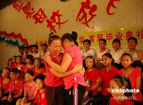 6月25日,河南南阳市卧龙区第二十一小学举办毕业典礼。80多名毕业生在舞台上和老师一起回忆六年中的点点滴滴,他们通过才艺展示、赠送鲜花等形式尽情抒发对老师、父母和同学们的感激。据悉,今年该区所有学校将首次改革传统模式,举行这种“个性化”的毕业典礼。中新社发 熊运彬 摄