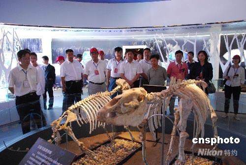 7月13日上午,投资360多万元建成的喀纳斯国家地质公园地质博物馆向游客正式开放,图为首批游客正在馆内参观。喀纳斯国家地质公园是一个以第四纪冰川作用、地质构造作用、水动力作用和地质地貌景观为主的综合性地质公园。中新社发 缑烨 摄