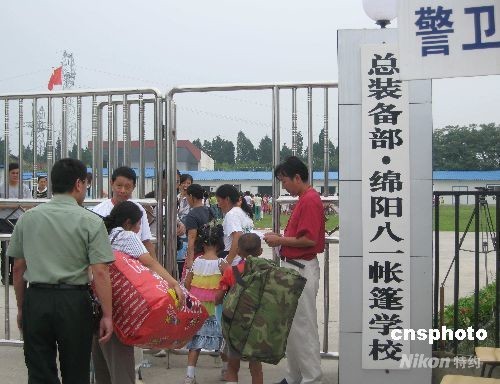 8月20日,在汶川大地震中受损严重的四川省绵阳市1000余所中小学全部开学,其中板房学校有612所。图为北川学生进入由总装备部出资修建的绵阳八一帐蓬学校。据介绍,该学校将接纳北川羌族自治县曲山小学和刘汉希望小学的九百余名学生。中新社发 霍潺 摄