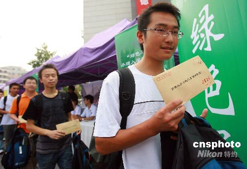 2008年8月28日,新学期伊始,清华大学为来自灾区的学子开辟“绿色通道”,营造家庭般的温馨氛围。中新社发 张学军 摄