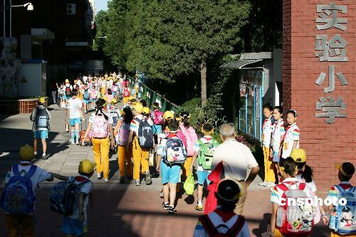9月1日,北京市中小学开学第一天,增加体育课程成为新学年的最大亮点。据了解,北京市各区县都要求学校把以往“零散”、“非正规”的体育活动改成正式的体育课,并列入正式的课程表中,每天都要上一节体育课。中新社发 富田 摄