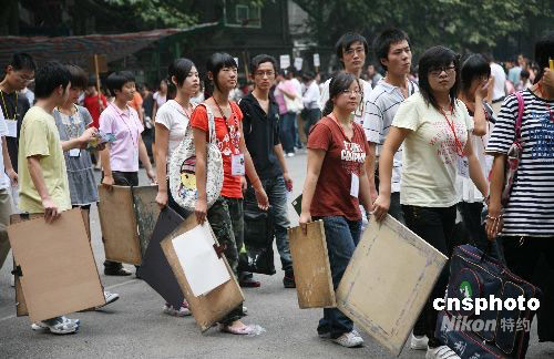 9月20日,参加江苏省2008年成人高校艺术类专业加试的考生进入考场。当日,江苏省2008年成人高校艺术类专业加试在南京师范大学举行,近3000名考生参加艺术类专业加试。据了解,近年成人高校艺术类专业受到亲睐。中新社发 钟山 摄
