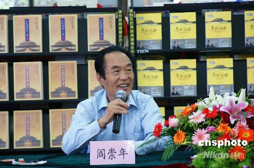 2008年10月5日下午,北京满学会会长、百家讲坛主讲之一、著名历史学家阎崇年来到无锡新华书店与读者见面。见面会上,他向读者详细介绍了由他创作的《明亡清兴六十年》、《袁崇焕传》、《康熙大帝》等书籍,并就历史爱好者和广大热心读者关心的话题进行了互动交流。中新社发 李 杰 摄