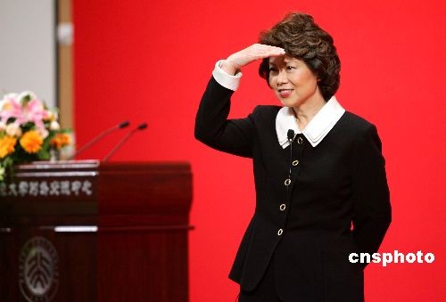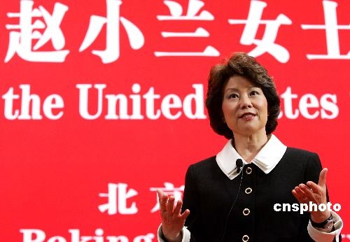 12月3日,美国劳工部部长赵小兰女士(U.S. Secretary of Labor Elaine L.Chao)在北京大学为师生做演讲。在演讲中,赵小兰部长阐述了美国劳工部在世界经济范围内为确保美国人民的健康、安全、退休保障以及竞争力所做出的努力。她还阐述了在不断发展的美中关系以及民众间交流和沟通文化差异方面的重要性。中新社发 富田 摄