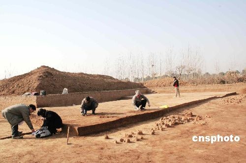 12月15日,安阳洹北考古现场发掘出宫殿大正房基址。河南安阳洹北商城遗址自上月开始考古挖掘以来,不断有新进展,此次发现位于洹北商城外的大型宫殿正房基址,南北长逾500米,东西宽300米以上,并且发现30多处分布密集的大型夯土建筑基址群。这是迄今发现的面积最大的商代单体建筑基址。中新社发 慎重 摄