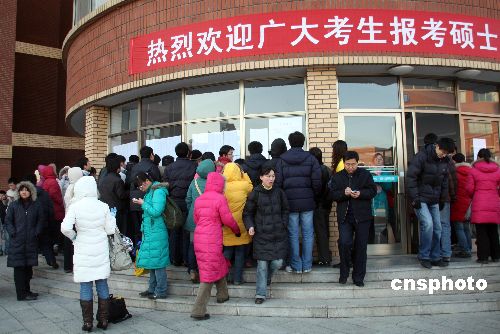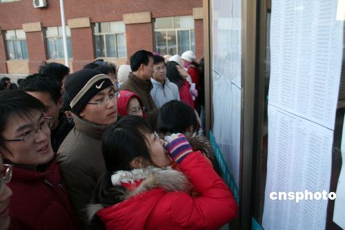 1月9日,山东滨州众多参加硕士研究生考试的学子蜂拥到山东滨州学院考点,提前确认考场。据悉,山东滨州共有3800余名考生报名参加。1月10日,2009年全国硕士研究生入学统一考试开考,共有124.6万名考生在全国各地应试。中新社发 郭志华 摄