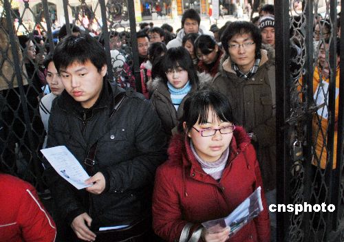 2009年1月10日,安徽省51860名考生走进考场参加2009年全国硕士研究生入学考试,报考人数比上年增加1876人。据悉,躲避就业压力是考研大军只增不减的一个重要原因。中新社发 从启 摄