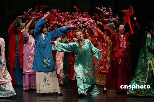 3月27日,来自北京中加学校的学生们和外籍教师共台演出中国古典文学剧目《红楼梦》片段,共同庆祝北京中加学校建校十二周年。包括中外来宾、家长代表及全校师生1700多人参加了校庆活动。中加学校是北京市第一所实施普通高中教育的中外合作新型学校,合作办学的双方是北京师范大学附属实验中学与加拿大纽宾士域省教育部和加拿大加皇国际教育投资集团。中新社发 张宇 摄
