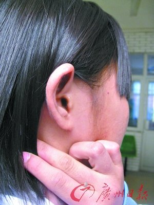 昨天下午,记者在广州市中西医结合医院见到了小晴,她看上去精神有些恍惚,面部微肿,腹部有轻微皮外伤。医生为她检查了耳部后,诊断为“耳膜穿孔,严重程度中等”。