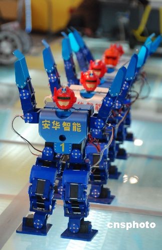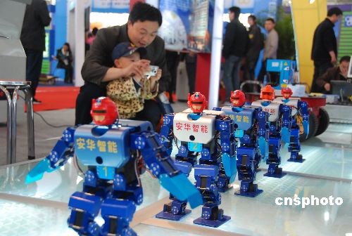 4月19日,机器人在文展会现场表演千手观音。为期三天的中国(潍坊)第二届文化暨旅游展示交易会在潍坊富华国际展览中心举行。具有时代气息的动漫系列和具有乡土气息的民间工艺品以及书画、古玩、陶瓷等8大版块同时亮相。 中新社发 孙树宝 摄