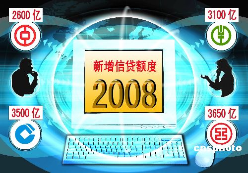 1月14日消息:央行核定了工商银行(601398,1398.HK)、建设银行(601939,0939.HK)、农业银行2008年的新增信贷额度,分别为3650亿元、3500亿元、3100亿元,均与2007年基本持平,中国银行核定的新增信贷额度为2600亿元,比2007年的2800亿元减少了200亿元。中新社发 吕建设 摄
