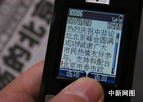 在中非合作论坛北京峰会圆满结束后,北京市官方十一月七日以短信方式感谢全体市民的热情友好参与和配合。北京市政府官员表示,中非论坛是市民参与城市管理,共同努力缓解和解决北京在大型活动期间交通等诸多问题的成功典范。 中新网图 余瑞冬摄