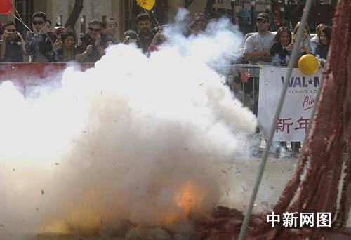 中新网洛杉矶2月18日电 (记者 贾国荣) 美国洛杉矶亚裔民众今天在古城芭沙迪娜欢聚一堂,闹市燃放十万响爆竹,舞龙舞狮嘉年华大游行,于中国农历大年初一春节游园中相互拜年。
