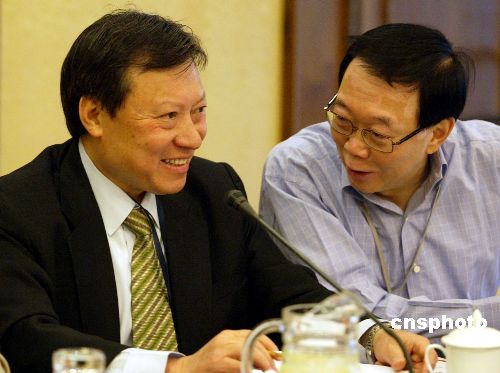 三月六日,正在北京举行的全国两会分别进行小组讨论。来自香港、澳门的政协委员在分组会上热烈发言,进言献策。图为全国政协委员、香港新鸿基地产发展有限公司主席兼行政总裁郭炳湘(左)在分组会上。中新社发 任海霞 摄