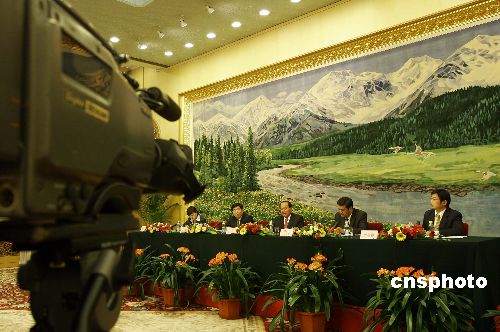 三月九日,参加十届全国人大五次会议的新疆代表团在北京人民大会堂接受集体采访,就新疆经济发展及社会稳定等方面的问题回答记者提问。中新社发 刘新 摄