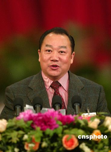 三月九日下午,全国政协十届五次会议举行第二次全体会议大会发言。图为全国政协委员、香港骏豪集团董事长朱树豪作《发挥香港高端服务业优势 打造新一轮内地与香港经济合作高潮》的发言。中新社发 杜洋 摄