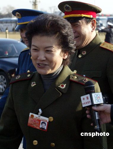 三月八日,十届全国人大五次会议在北京人民大会堂举行第二次全体大会,宋春丽代表参加会议前接受记者采访。中新社发 任海霞 摄
