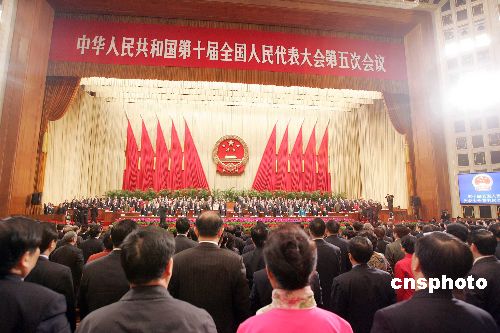 十届全国人大五次会议三月十六日上午在北京人民大会堂闭幕。中新社发 毛建军 摄