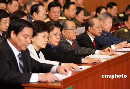 十届全国人大五次会议三月十六日上午在北京人民大会堂闭幕,范徐丽泰等代表们按表决器通过香港特别行政区选举第十一届全国人大代表的办法草案。中新社发 毛建军 摄