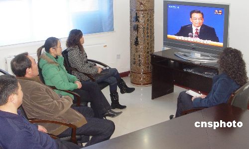 3月16日,“两会”刚刚落下帷幕,位于祖国最西北边锤的新疆阿勒泰日报社全体采编人员积极收看温家宝总理答中外记者问。“两会”期间,阿勒泰日报社采编人员围绕两会,结合当地多民族农牧区的实际,积极采编相关新闻,让当地各族群众及时、深入地了解会议精神。中新社发 张秀科 摄
