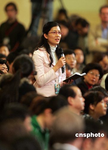 十届全国人大五次会议三月十六日上午在北京人民大会堂闭幕,国务院总理温家宝在会议闭幕后出席记者招待会并回答中外记者提问。图为中国新闻社记者路梅向温总理提问。中新社发 毛建军 摄