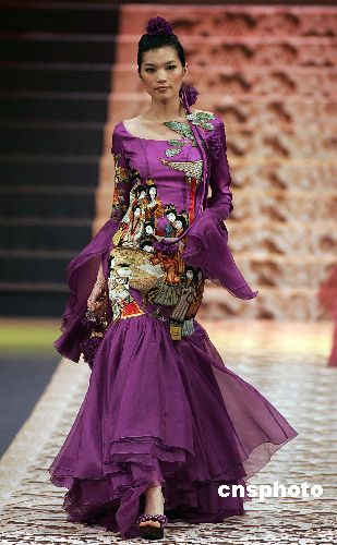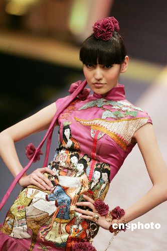 “柒牌中华立领杯”时尚中华创新设计邀请赛三月二十三日晚在中国国际时装周上举行,著名设计师们联袂献上了一台展现灿烂中华民族文化传统元素的时装盛宴。中新社发 毛建军 摄
