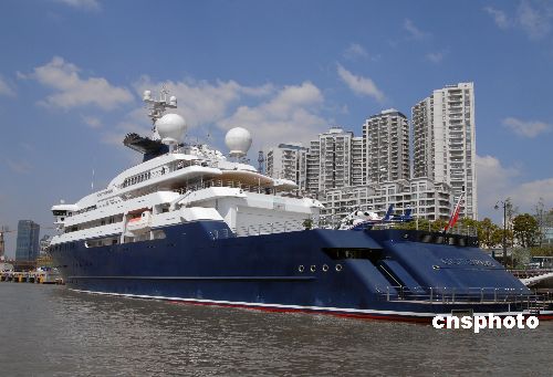 图:价值2.5亿美元超级游艇“章鱼”号访问上海(2)