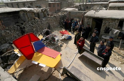 4月8日下午,一架三座简易超轻型飞机坠入山东平阴县平阴镇前阮二村一农家院内,一名驾驶员不幸遇难,事故未造成其他人员伤亡,坠落原因不明。 事发后,当地警方赶到了现场,目前此事正在进一步调查之中。中新社发 俄国庆 摄