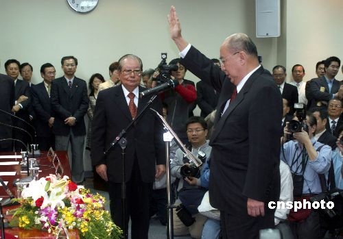 4月11日,中国国民党新任主席吴伯雄在台北正式就职。中新社发 黄少华 摄
